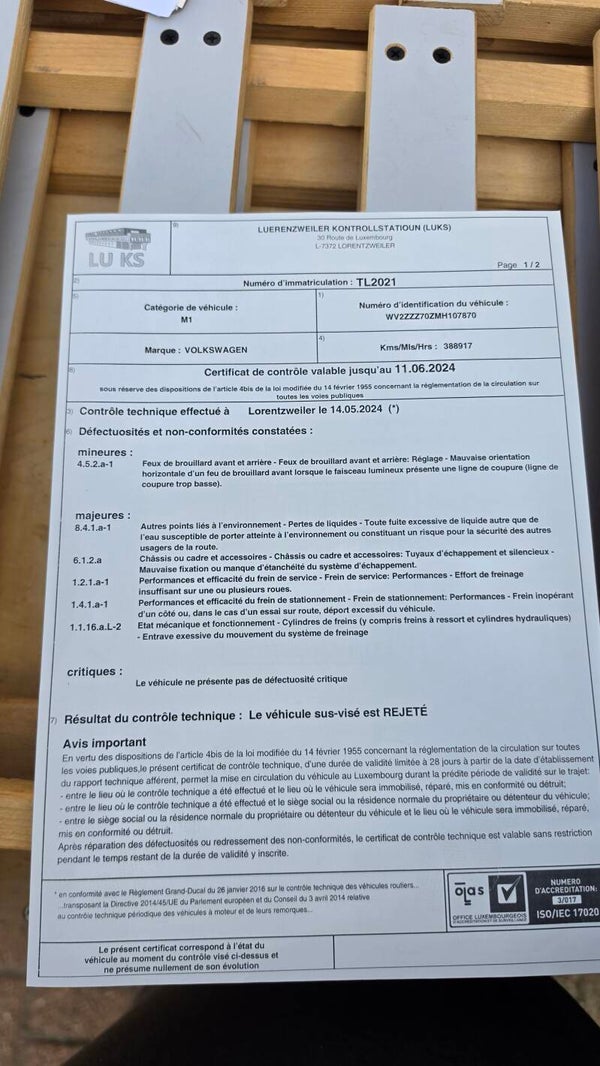 Für den nächsten TÜV & die Straßenzulassung sind Investitionen nötig: